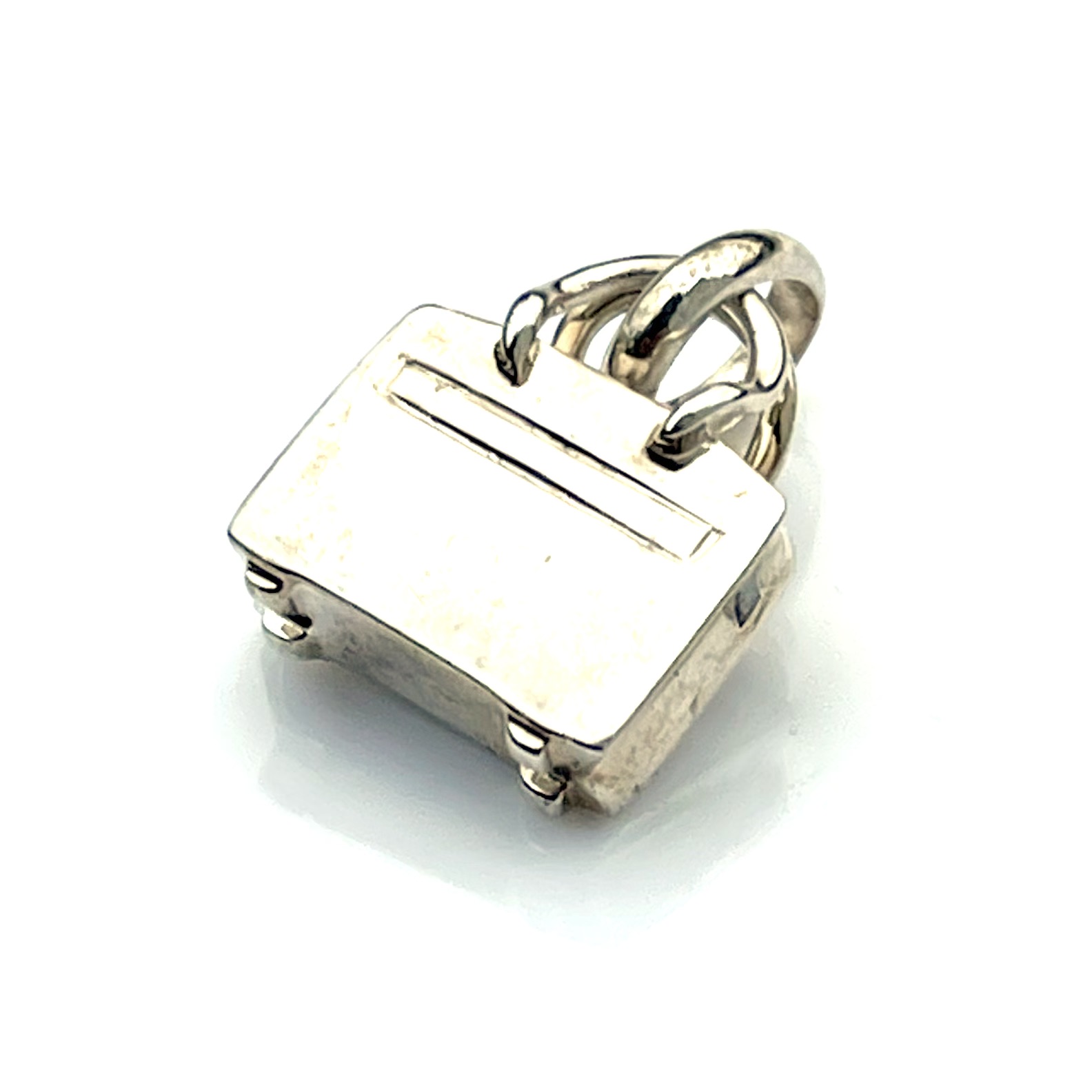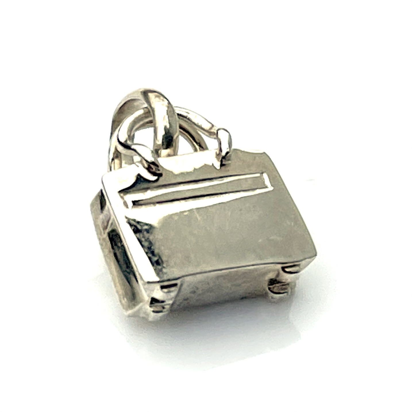 - Material: Crafted from sterling silver with gold-plated accents on the lock, strap, and handle (now mostly worn to reveal silver).