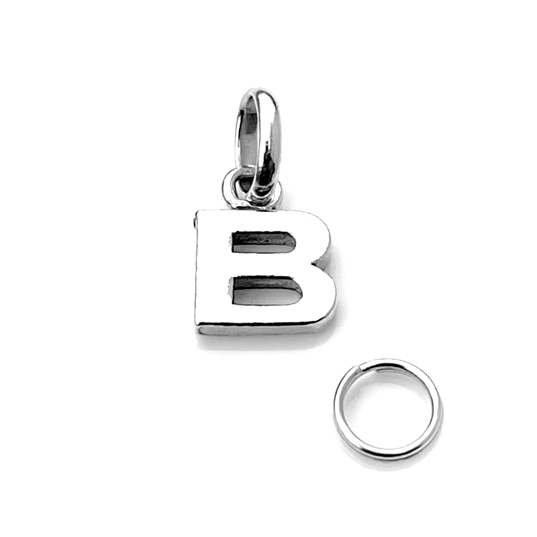 The serif-style font of the letter ‘B’ ensures timeless appeal, while its compact size makes it versatile for various jewellery styles.
