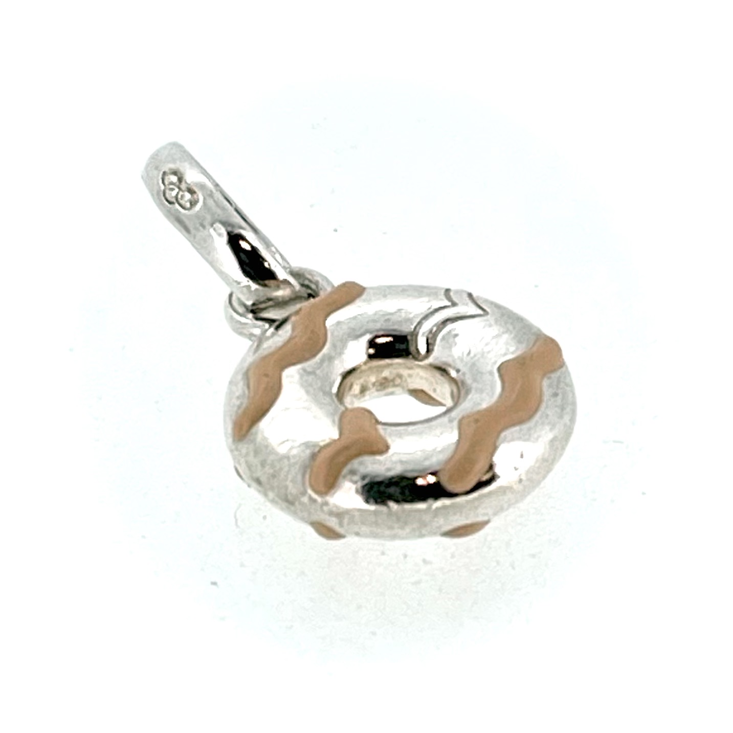 The doughnut has long been a symbol of comfort and celebration—a simple treat often shared with friends or enjoyed as a quiet indulgence. With its pink icing and perfect doughnut shape, the charm evokes those moments of joy and simplicity, making it a meaningful keepsake for collectors.