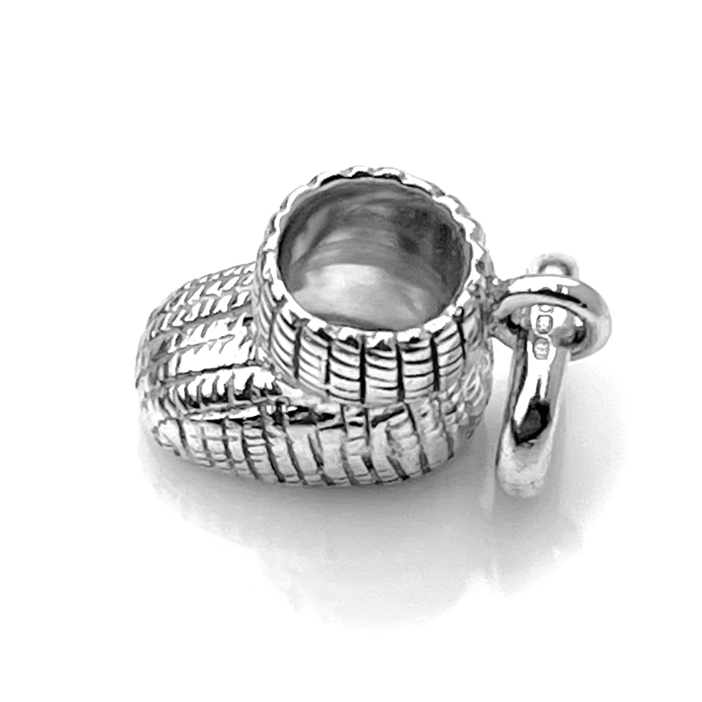 - Material: Sterling silver with a delicate knitted pattern, adding texture and charm.