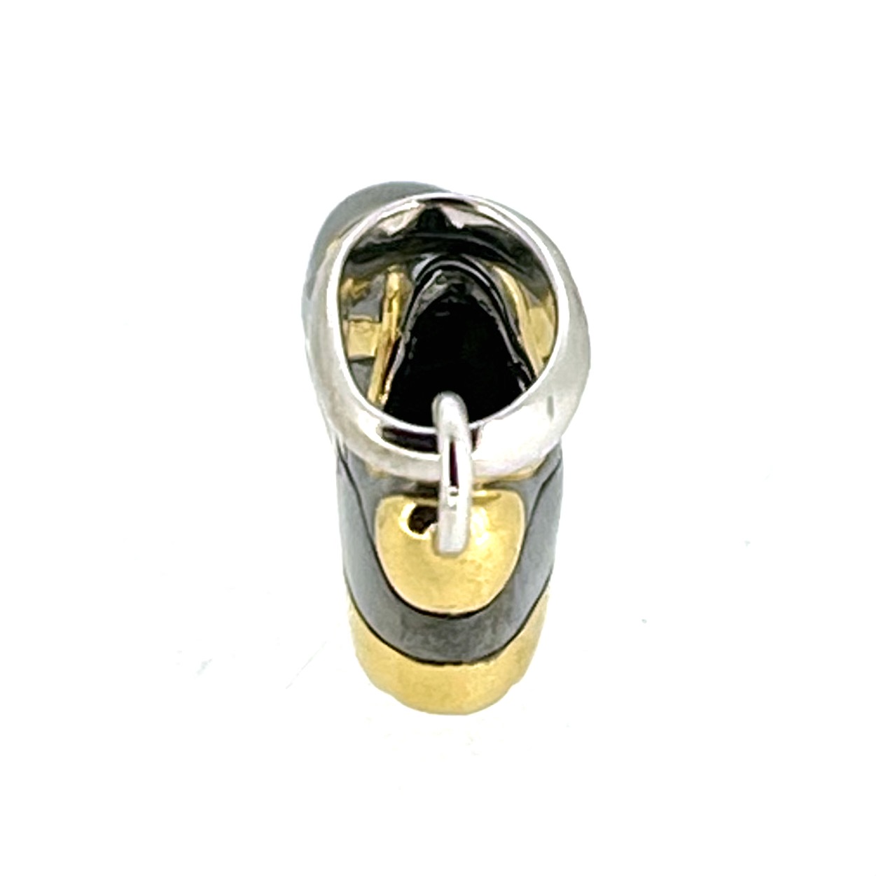 This version of the charm is particularly special: it features a combination of black rhodium and 18ct yellow gold vermeil over sterling silver, giving it a striking bi-colour finish. The contrast between the dark rhodium and warm gold not only adds depth to the sculptural detail but also reflects the dual personality of the modern woman — elegant and bold, classic and contemporary.