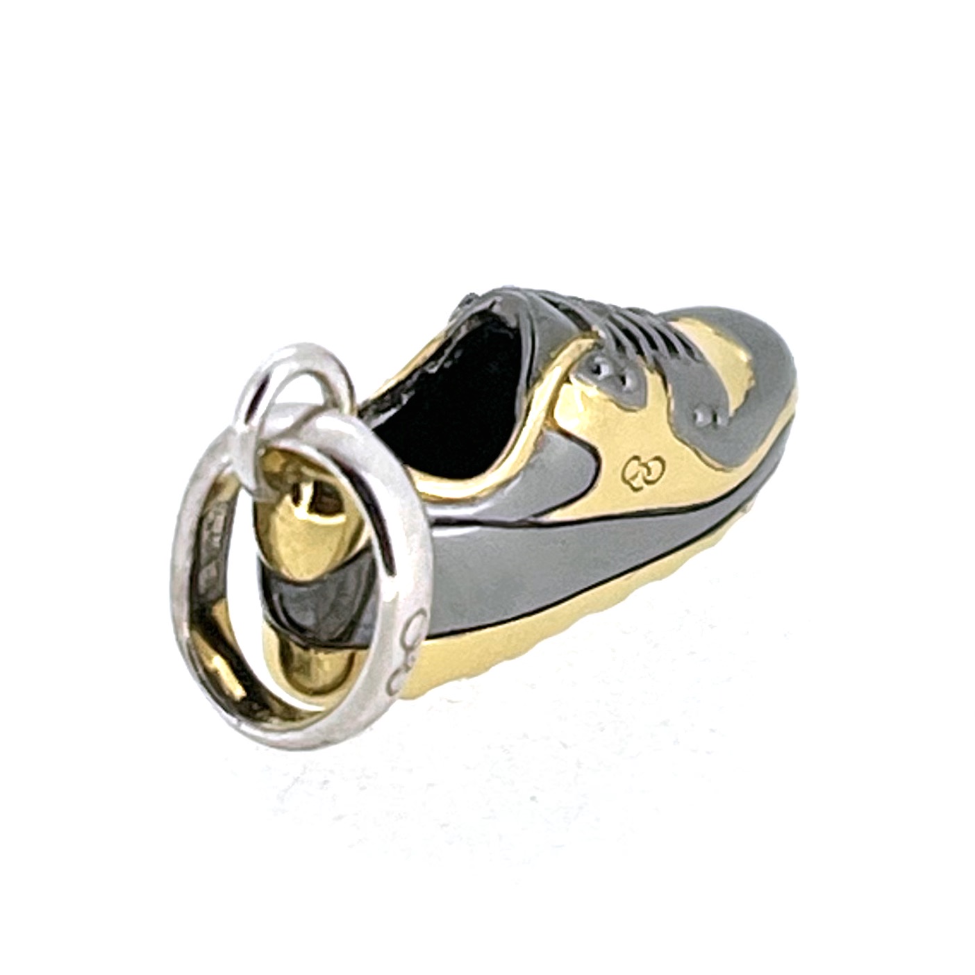 Released during a time when designer trainers were making their way from gym floors to fashion week runways, this Links of London sneaker charm captured the moment perfectly. With its sculpted sole, bold two-tone finish, and precise detailing, the piece channels the aesthetic of iconic silhouettes such as the Nike Air Max 90 and Reebok classics — without ever naming names. The brand’s signature 3-ring logo appears on the side of the trainer, while the word LINKS is engraved on the underside, making this charm unmistakably authentic.