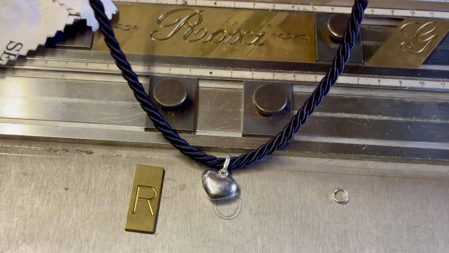 The first Roxi prototype was engraved using a vintage manual engraving machine, reflecting the handcrafted artistry that defines this collection. The charm’s imperfections and variable depth in the engraving add character and authenticity, making it a piece that feels deeply personal.