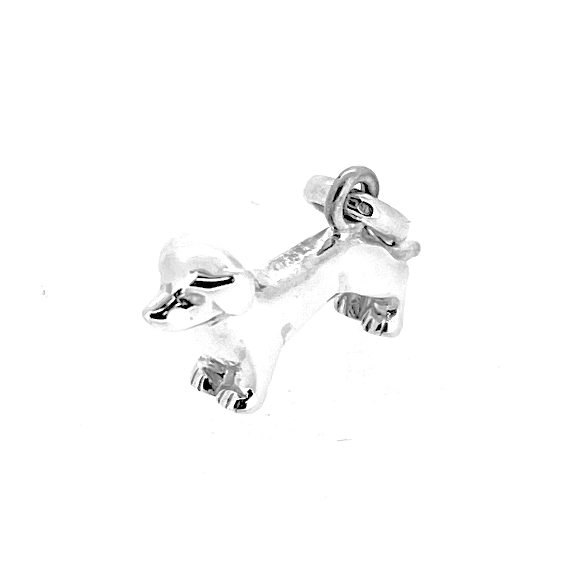 Before Links of London officially released the Dachshund Dog Charm in 2018, they quietly introduced this earlier canine creation in 2009. Cast entirely in solid sterling silver, this charm showcases a long-bodied silhouette with upright ears, a sculpted snout, and raised tail—attributes that strongly resemble the Dachshund breed. The design is more realistic than stylised, with careful attention to anatomical detail.