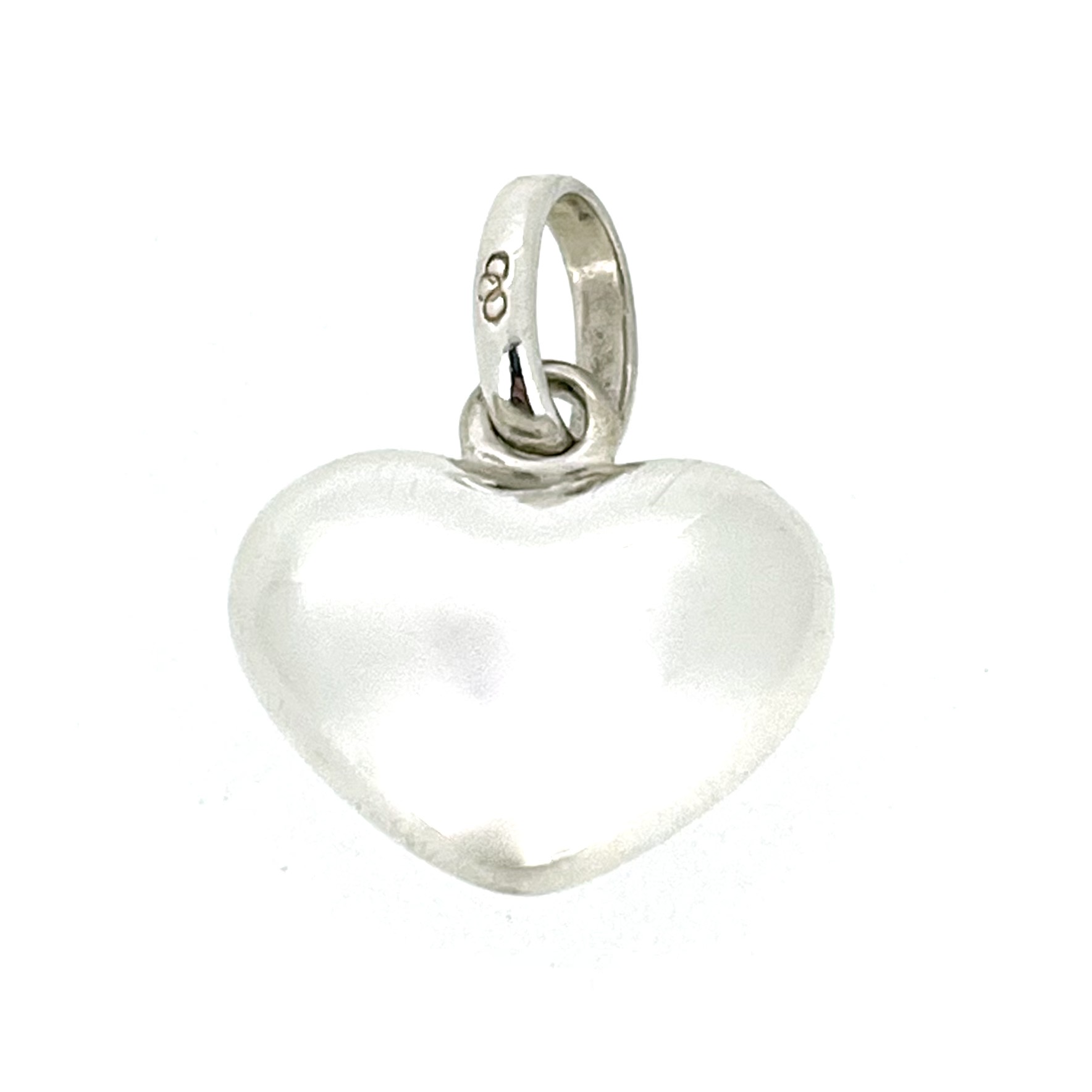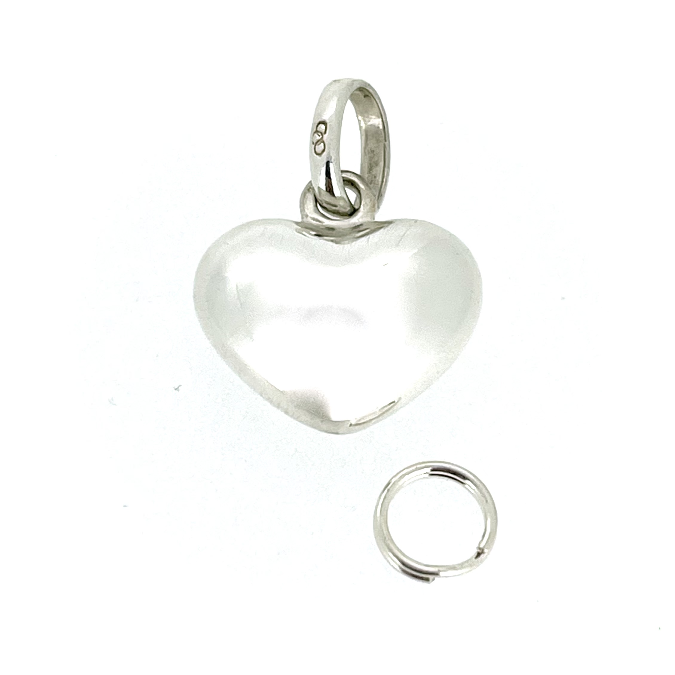 Measuring 13mm high (16mm including the jump ring), 16mm wide, and 7mm thick, the charm’s proportions make it both noticeable and elegant. Its smooth, puffed design adds depth and dimension, while the polished sterling silver finish highlights its craftsmanship.