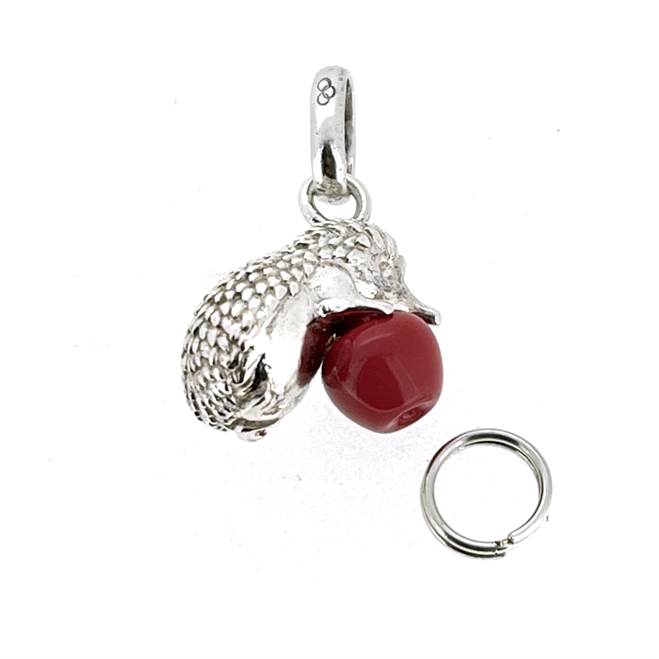 The hedgehog was first introduced as part of a series of nature-themed charms inspired by British wildlife. While the original plain silver version gained popularity for its tactile, three-dimensional form, this enamel apple edition added a burst of unexpected colour—elevating it from charming to collectible.