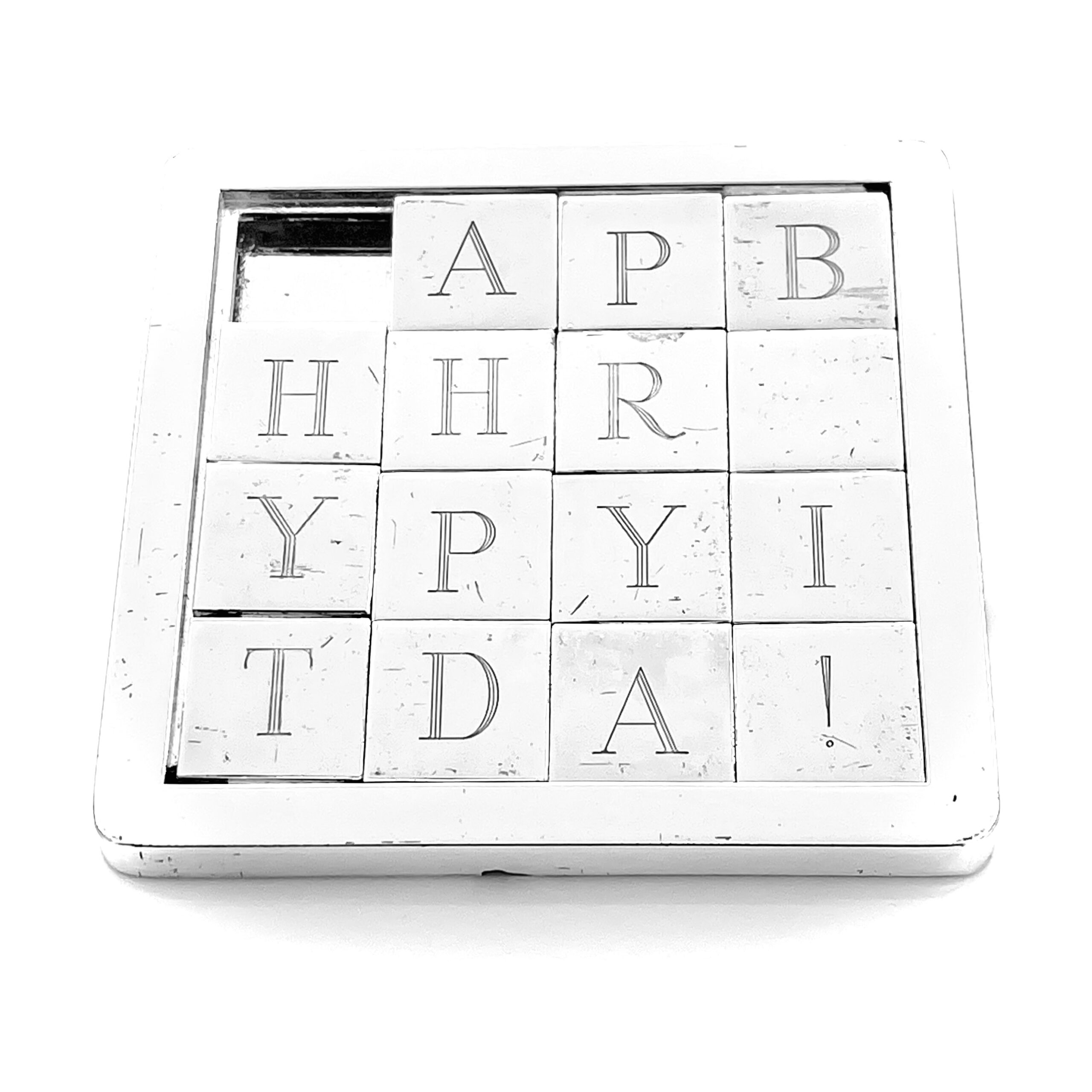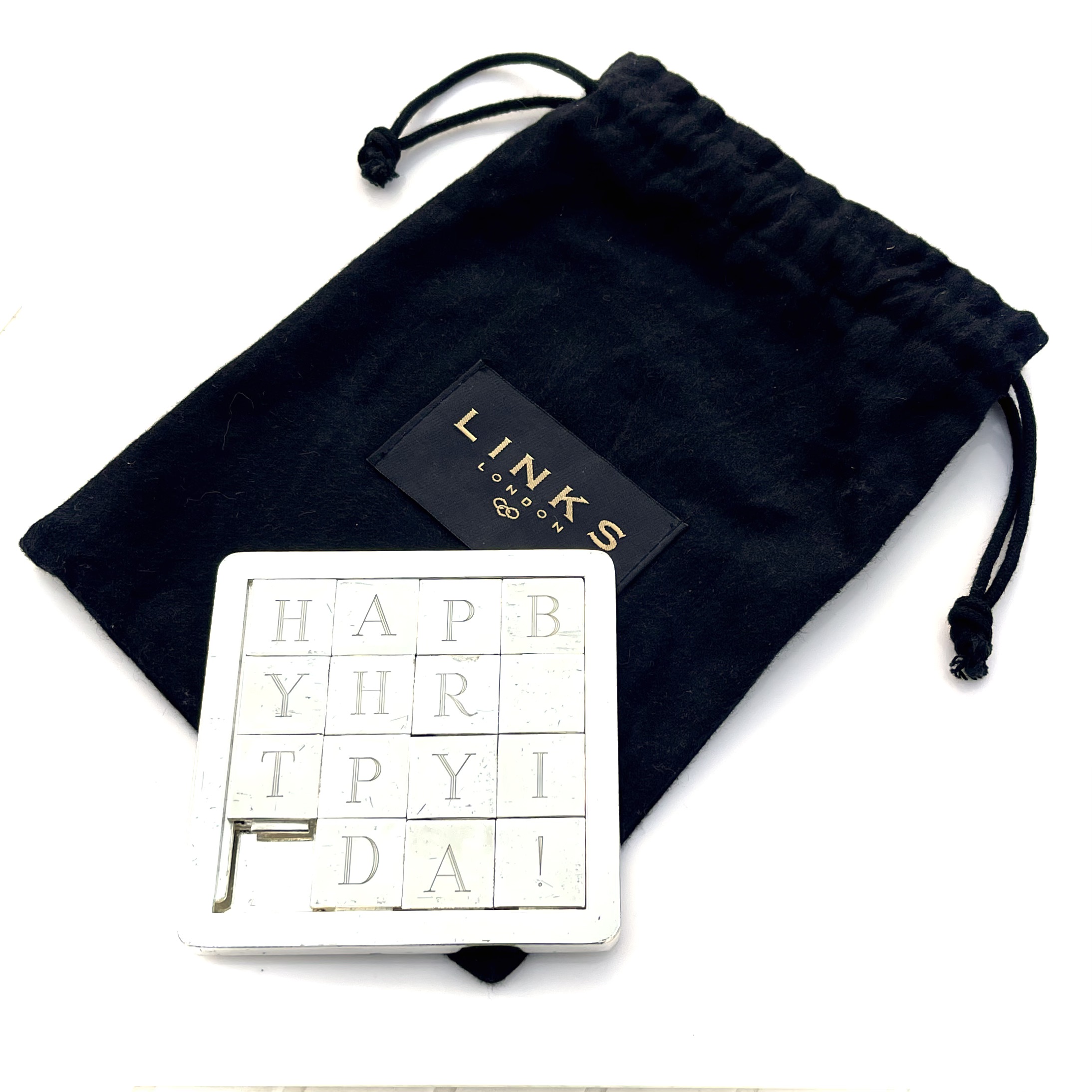 The Links of London Silver-Plated Sliding Puzzle with the “Happy Birthday” motif is a delightful example of the brand’s ability to turn everyday objects into works of art. This puzzle: