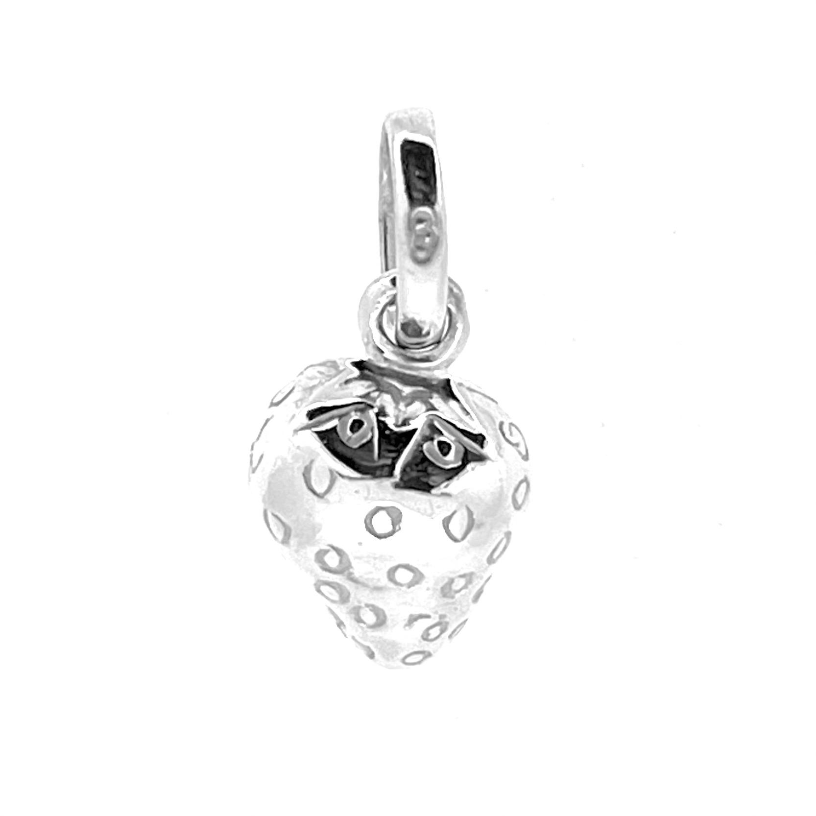 This vintage charm is crafted in solid sterling silver (S925) and features a beautifully textured strawberry form. Measuring around 12mm high (16mm including the jump ring) and 10mm × 8mm at its widest point, the piece is instantly recognisable yet elegantly understated. The standard 9mm × 7mm Links of London bail, complete with the brand’s three-ring logo and hallmark, ensures compatibility with Sweetie Bracelets and most charm carriers.