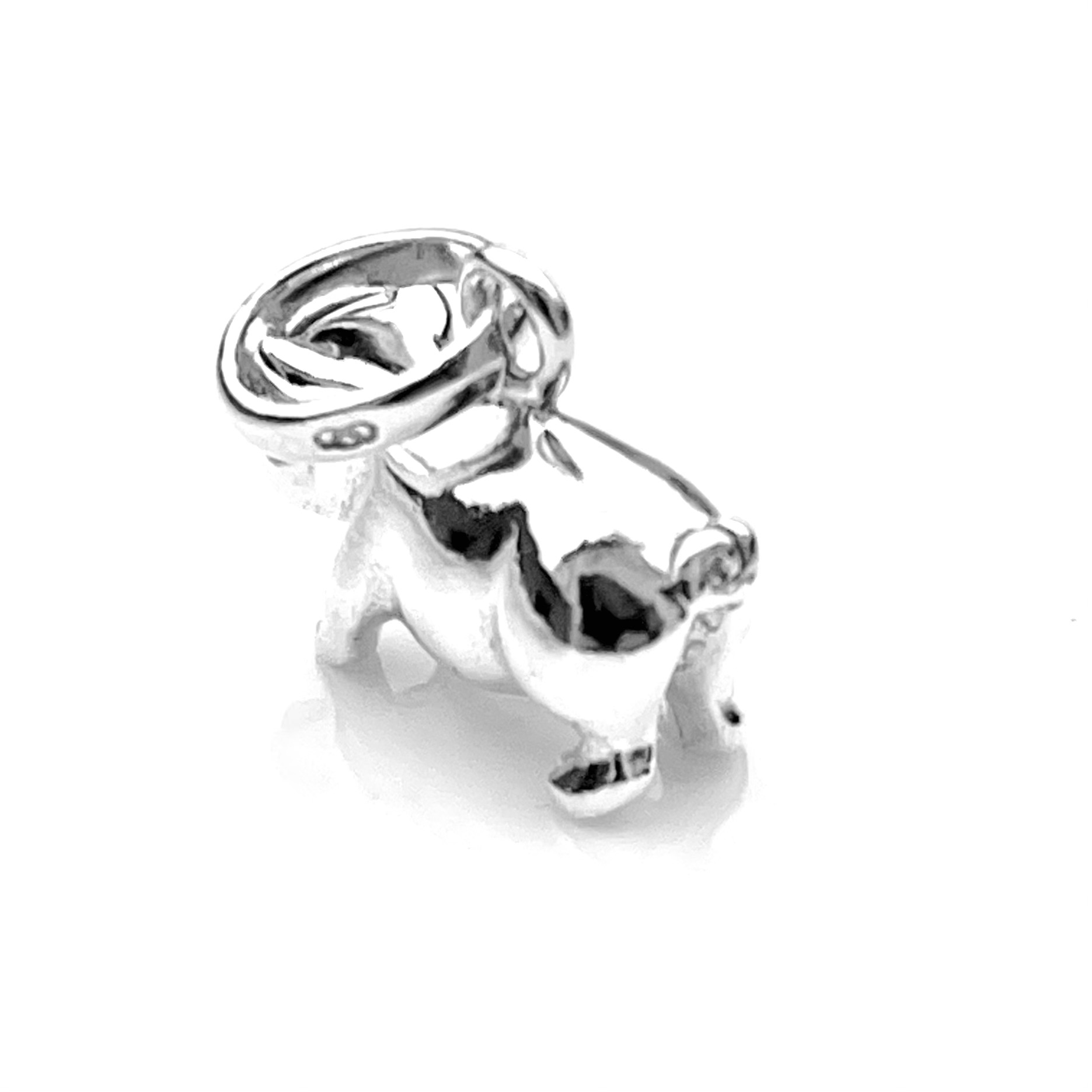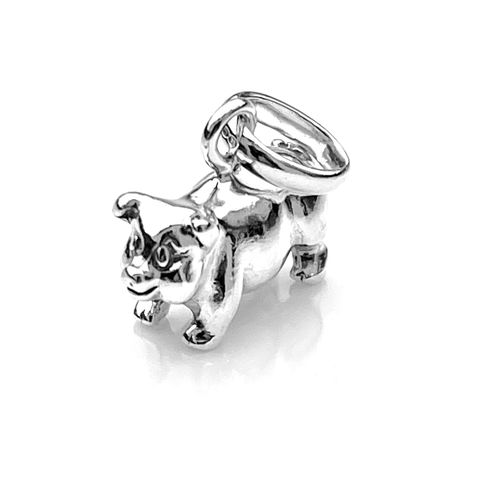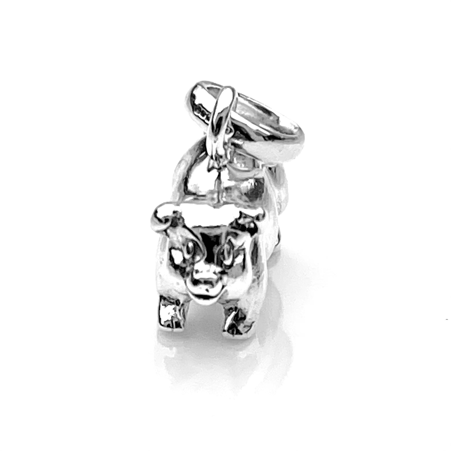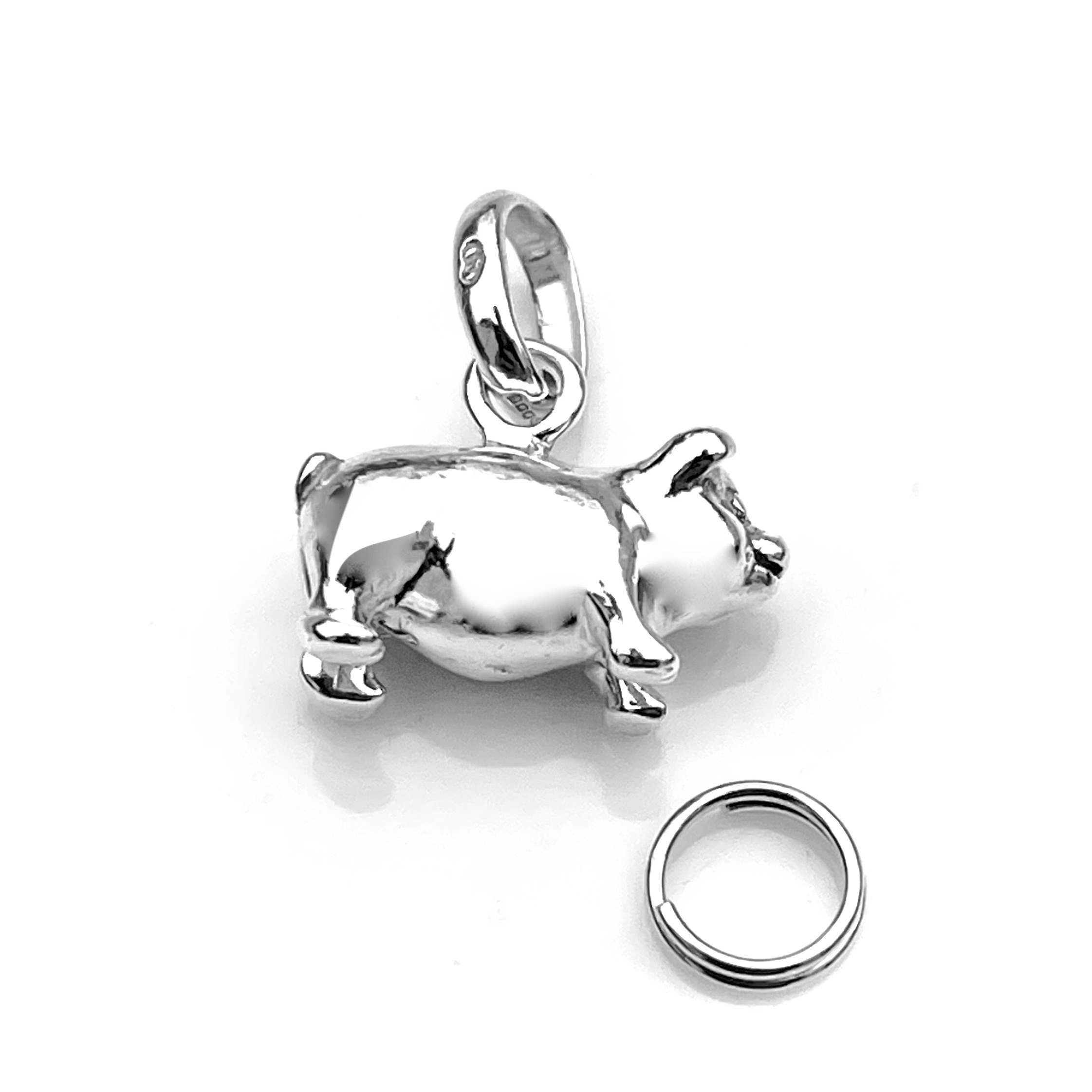 - Polished Finish: A high-polish surface accentuates every curve of the pig’s body, ears, and snout, reflecting light and highlighting the charm’s playful proportions.